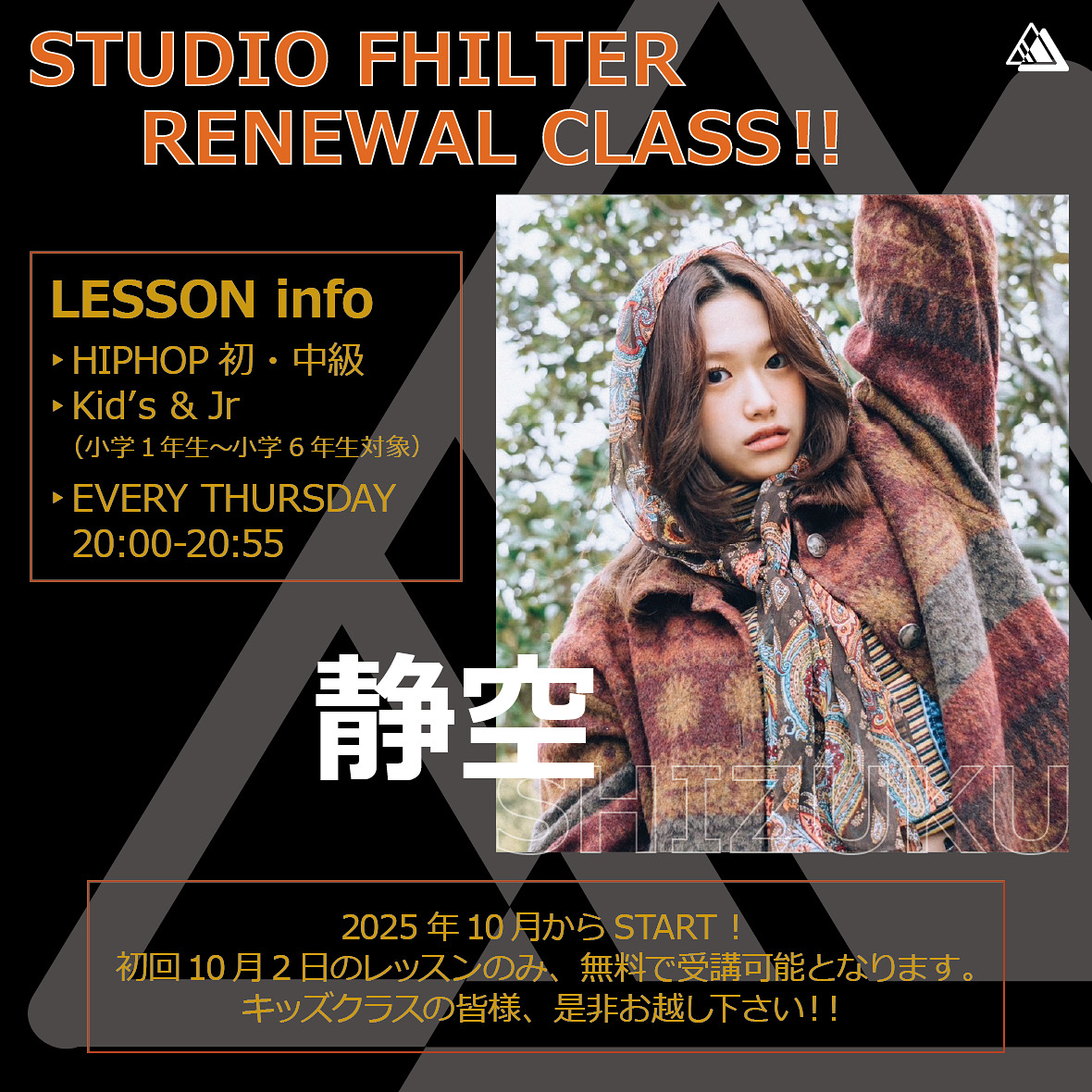 リニューアルクラスに伴い、10月2日(木)の初日レッスンのみこちらのクラスはレッスン料無料で受講可能となります。