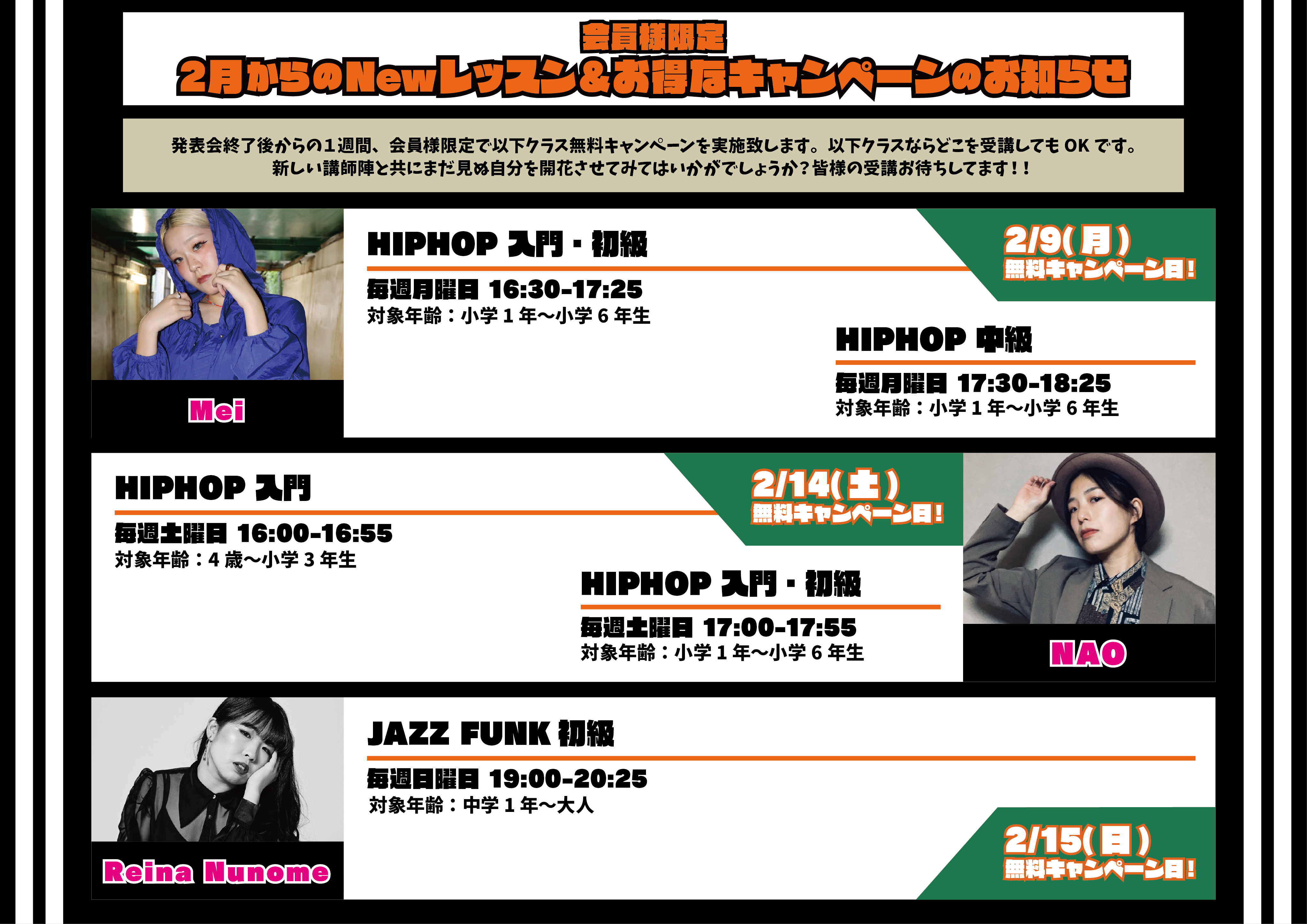 【NEWレッスン情報&会員様限定2月キャンペーンLESSON情報】