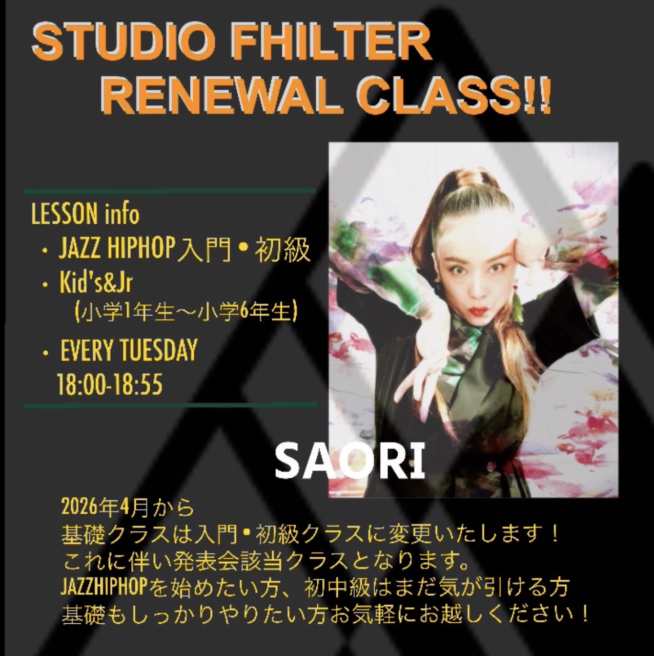 2026年4月から基礎クラスは入門・初級クラスに表記変更いたします!